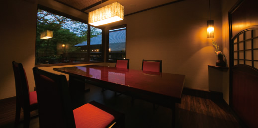 The Gettouan restaurant is for main building guests. It has been renovated with tatami flooring and table seating with chairs. Tatami flooring accents the cozy traditional Japanese ambiance of the restaurant.