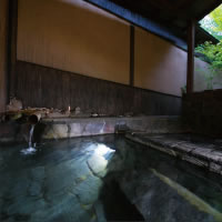 The public bath has separate baths for men and women, both indoors and outdoors, with Mt. Yufu soaring above, and a view of starry skies at night.