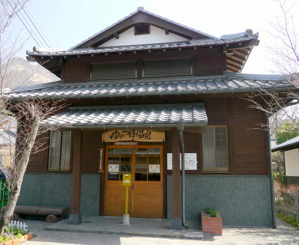 江戸時代の文献にもその名前が残っているという古湯。金鱗湖から流れる湯の坪川の畔にある風情ある共同浴場です。